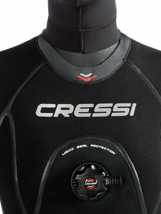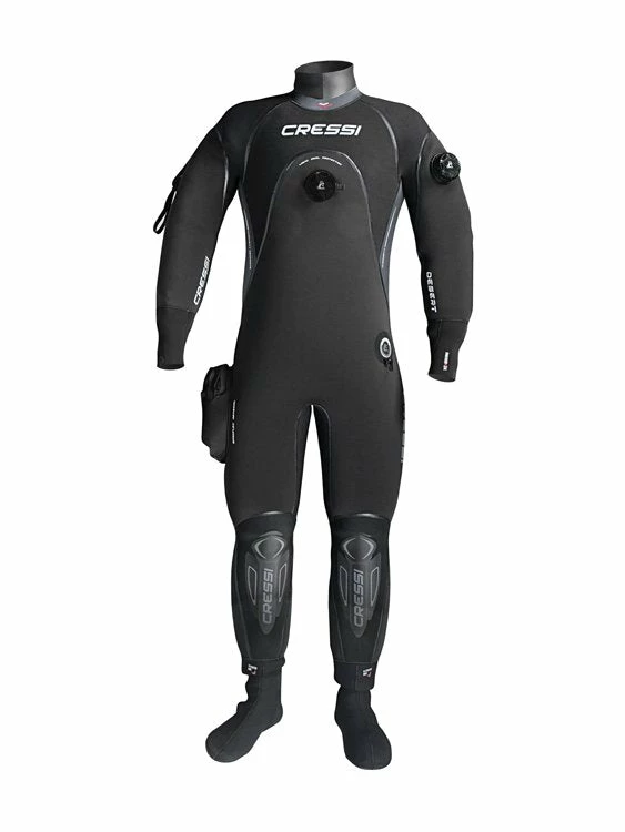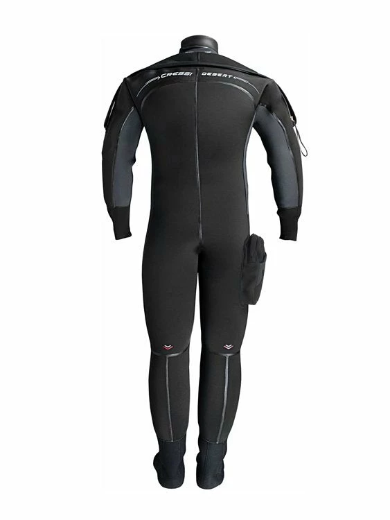The Cressi Desert Drysuit Mens is a 4mm thick pre-compressed neoprene dry suit with liquid seal protected stitched joints. The high-density neoprene and the Liquid Seal technology spread along the seams to increase seal protection, make this drysuit high resistant to wear, long lasting and highly insulating.
