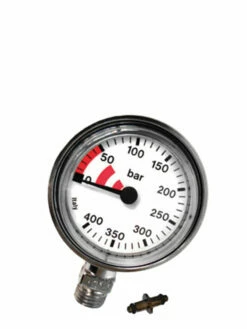The display is luminous and is easy to read with a red zone from 50 bar downwards. It has 10 bar increments.