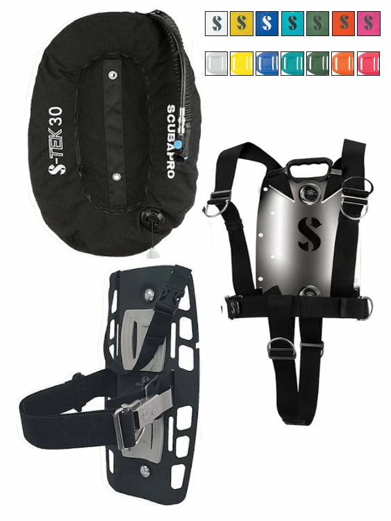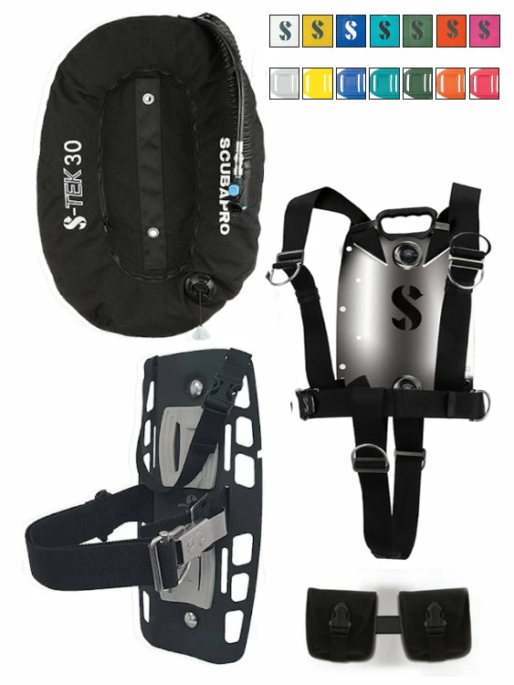 The Scubapro S-Tek Pure Single System comes with either a 30lb or a 40lb wing. The 30lb wing gives you a super streamlined single tank system. The 40lb wing offers is much wider and offers you the option to dive either single tanks or twin tanks with it!