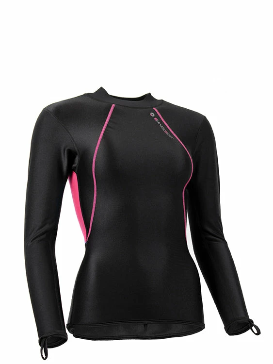 Besides warmth the Sharkskin Long Sleeves provide you will UV protection, are neutrally buoyant (which is a major plus when scuba diving!), odour resistant, itch resistant and anti-microbial. They can even be washed in washing machines if you desire to do so and have thumb tabs to make it easier to put underneath an existing wetsuit!